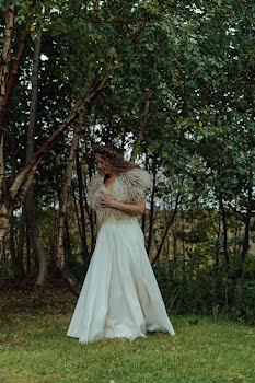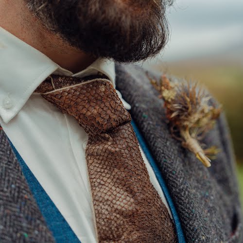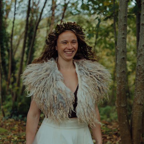 Top and skirt design: Jacinta Caraher of Purple Peach. Tanning: Lucy and Jessie Watson-Brown of Oak & Smoke Tannery. Shawl: Wild Wool Shepherdess. Shoes: Ruth Emily Davey. Earrings: Jessie Watson-Brown. Suit: Magee 1866. Food: The Rusty Oven. Reception: Patsy Dans. Music: Dana Masters. Flowers: Bowerbird Flowers and Apothecary