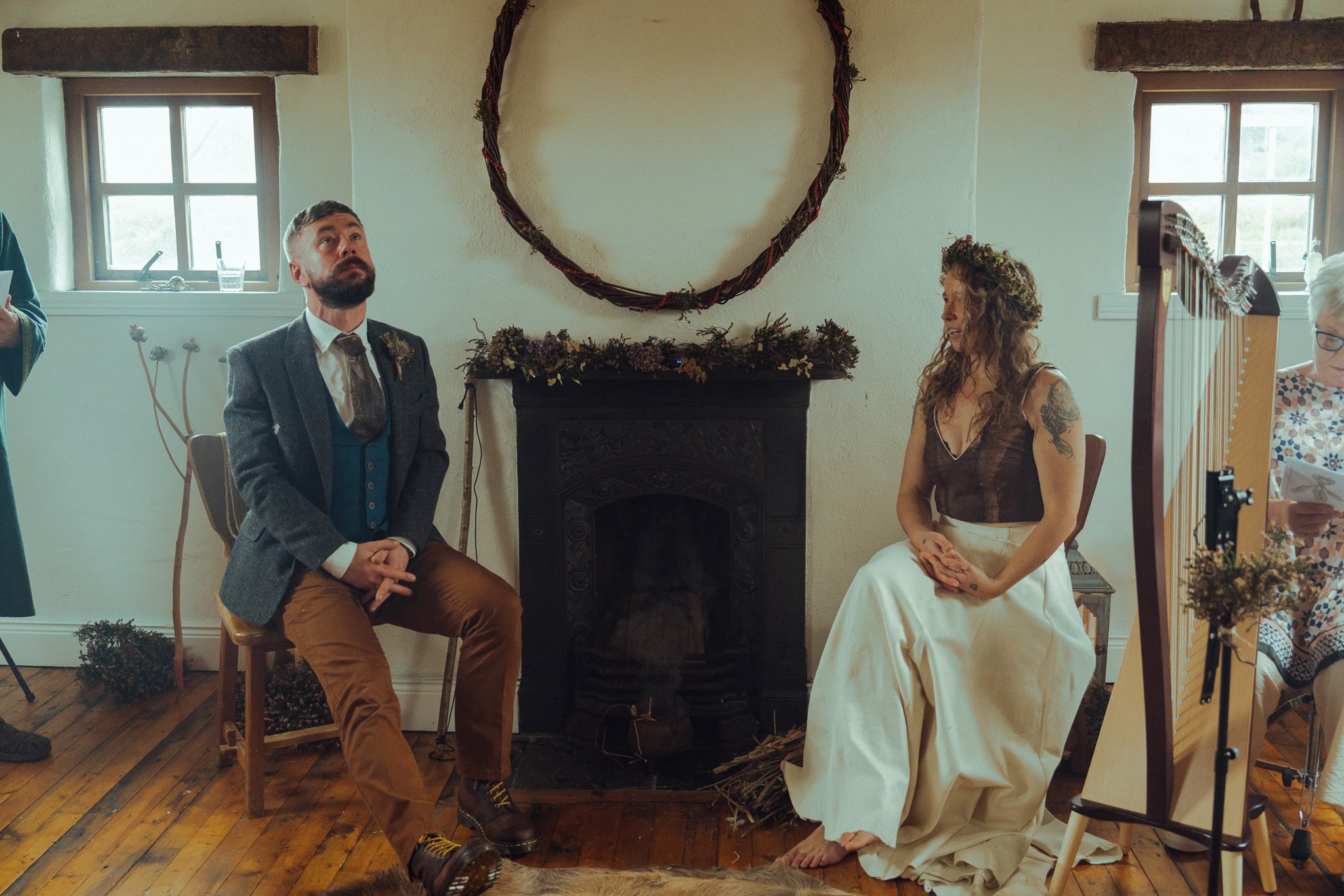 Our wedding took place in a beautiful hall in Corcreggan Mill, Dunfanaghy. Ceremony and ritual are an important part of our life together so it was important to us that the ceremony reflected us individually and as a couple. Our friend and local Druid, Seán Ó Gaoithín guided the ceremony.