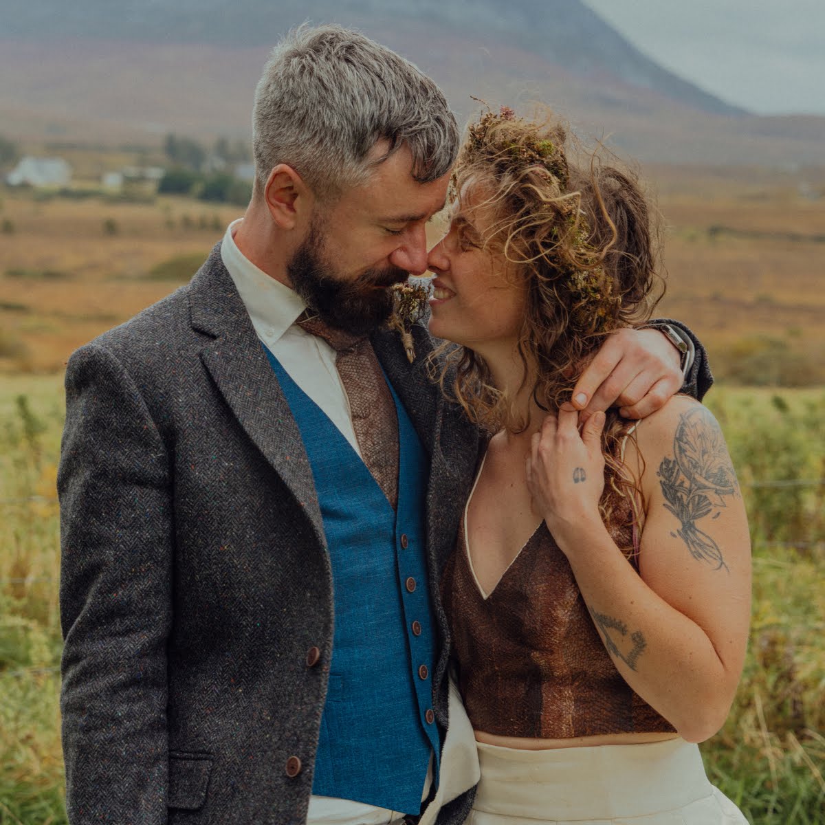 Although their families had been friends for generations, it wasn’t until a gathering in 2015 that Lucy and Matt’s connection truly blossomed. Surrounded by the rugged beauty of Donegal, the couple celebrated their love with a deeply personal ceremony that honoured rituals and the natural world.