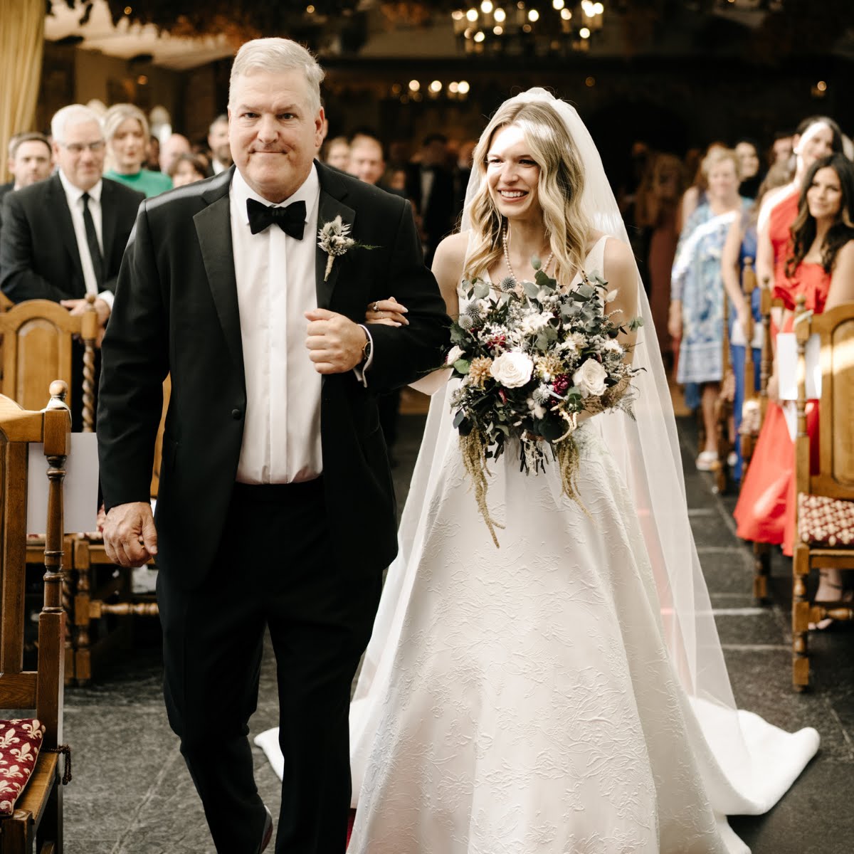 Wedding Dress: Martina Liana. Groom’s Suit: Abrahams. Florist: Meadow Bunch. Cake: Sheridan’s Cheese & The Fox and The Flour. Makeup: Rebecca O’Sullivan. Hair: Sinead McGoldrick. Rings: Jewel Casket. Rehearsal dinner music: Bryan Murphy. Ceremony music: Doug Sheridan. Band & DJ: Carouse.