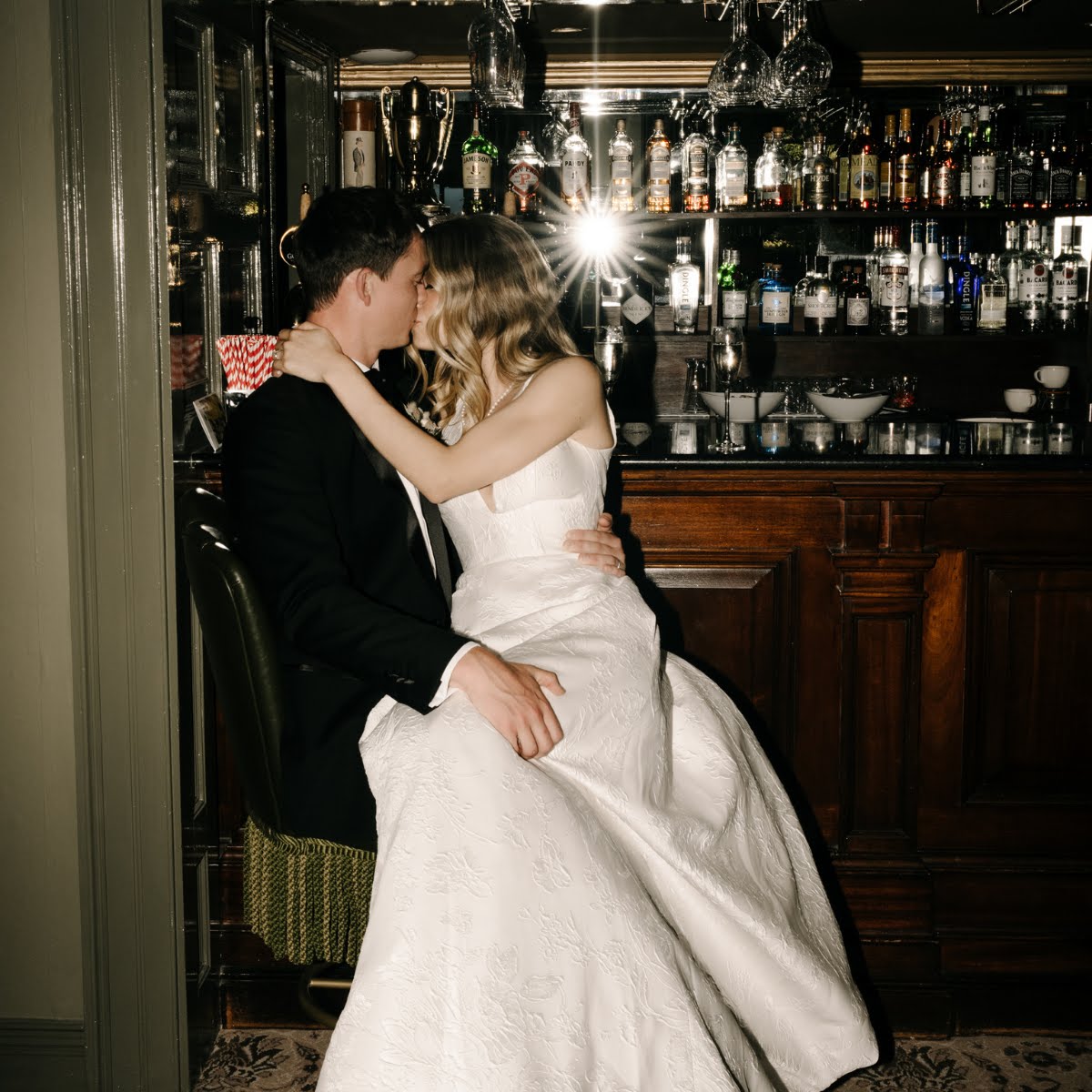 Robert had booked a surprise weekend trip for my 27th birthday. We ended up in London and stayed at the Royal Automobile Club and within 30 minutes of arriving, Robert popped the question on my birthday eve before dinner in a quiet bar. Robert worked with jeweller Keith Cusack in the Jewel Casket for months to modernise a very similar engagement ring to that of my grandmother. I was speechless and once the tears subsided, I could finally get my answer out – an obvious yes after seven years together.