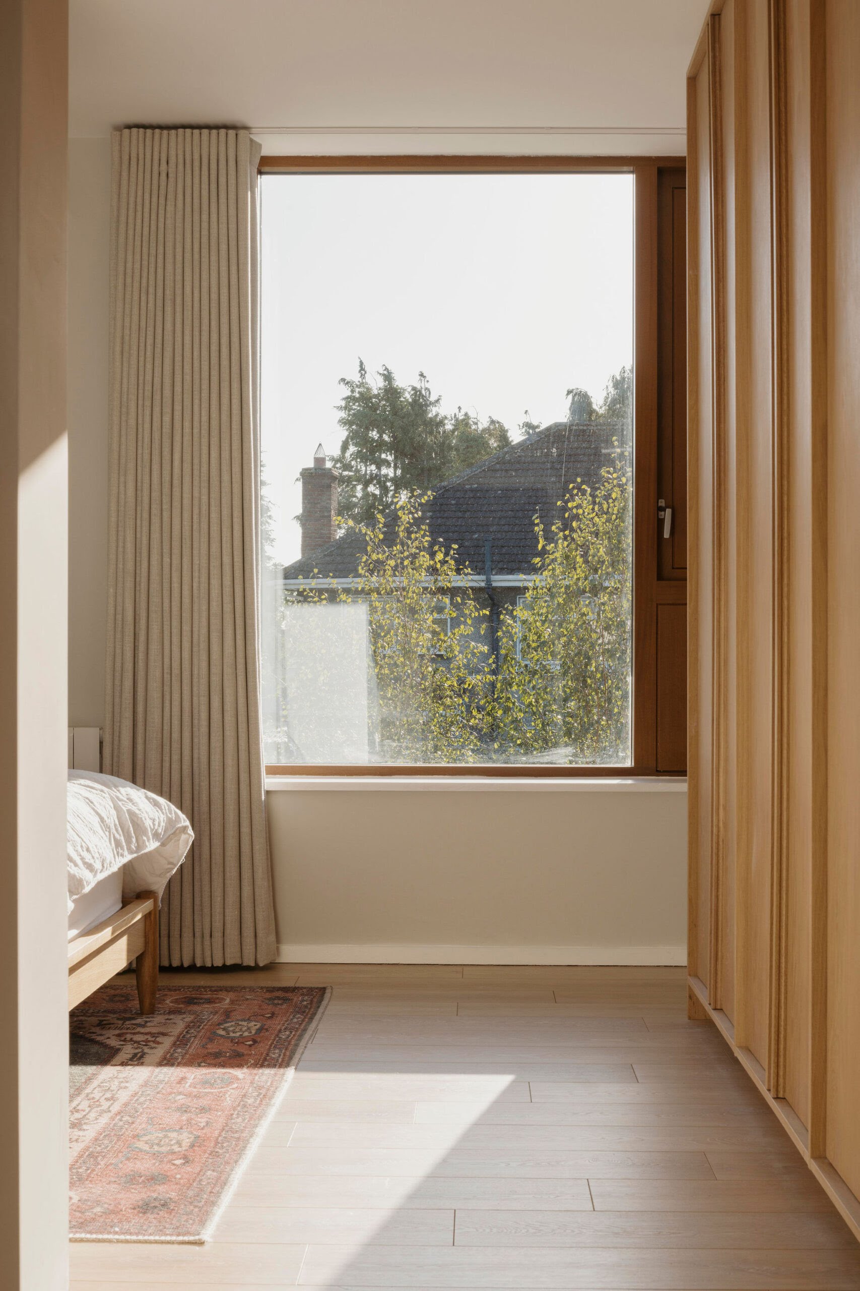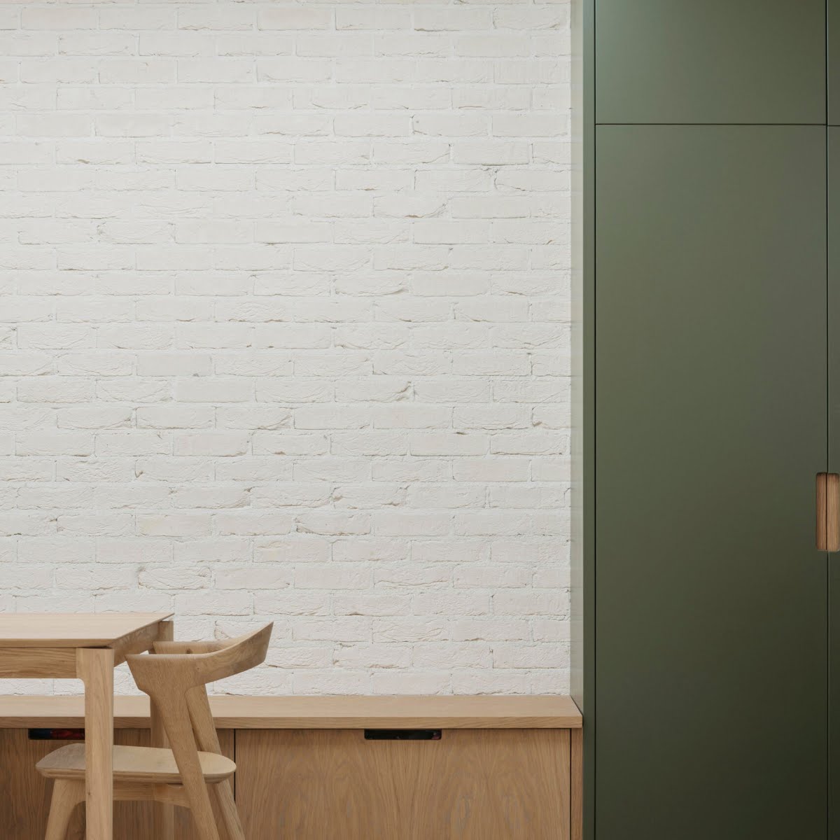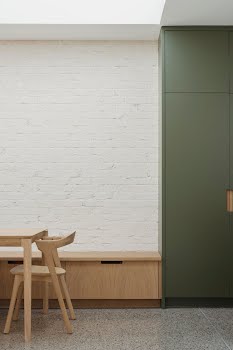 With so many factors at play in this design, Shane explains, the palette for this home was kept relatively neutral, to allow elements such as the original brick of the home, the Architectural Conservation Area, and the view from the garden. “The risk when you play with neutral tones and colours is that the spaces can become cold or sterile. While the brick helps to add texture, it was very important that this was juxtaposed against some colour and the warmth of the timber elements, not only the large timber windows but also in the kitchen island, kitchen details, the bench and wardrobes.” All in all, the result is a bright, welcoming space that balances its many competing demands.