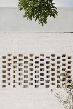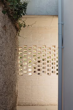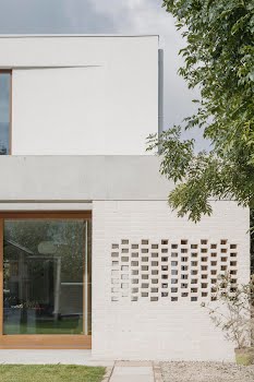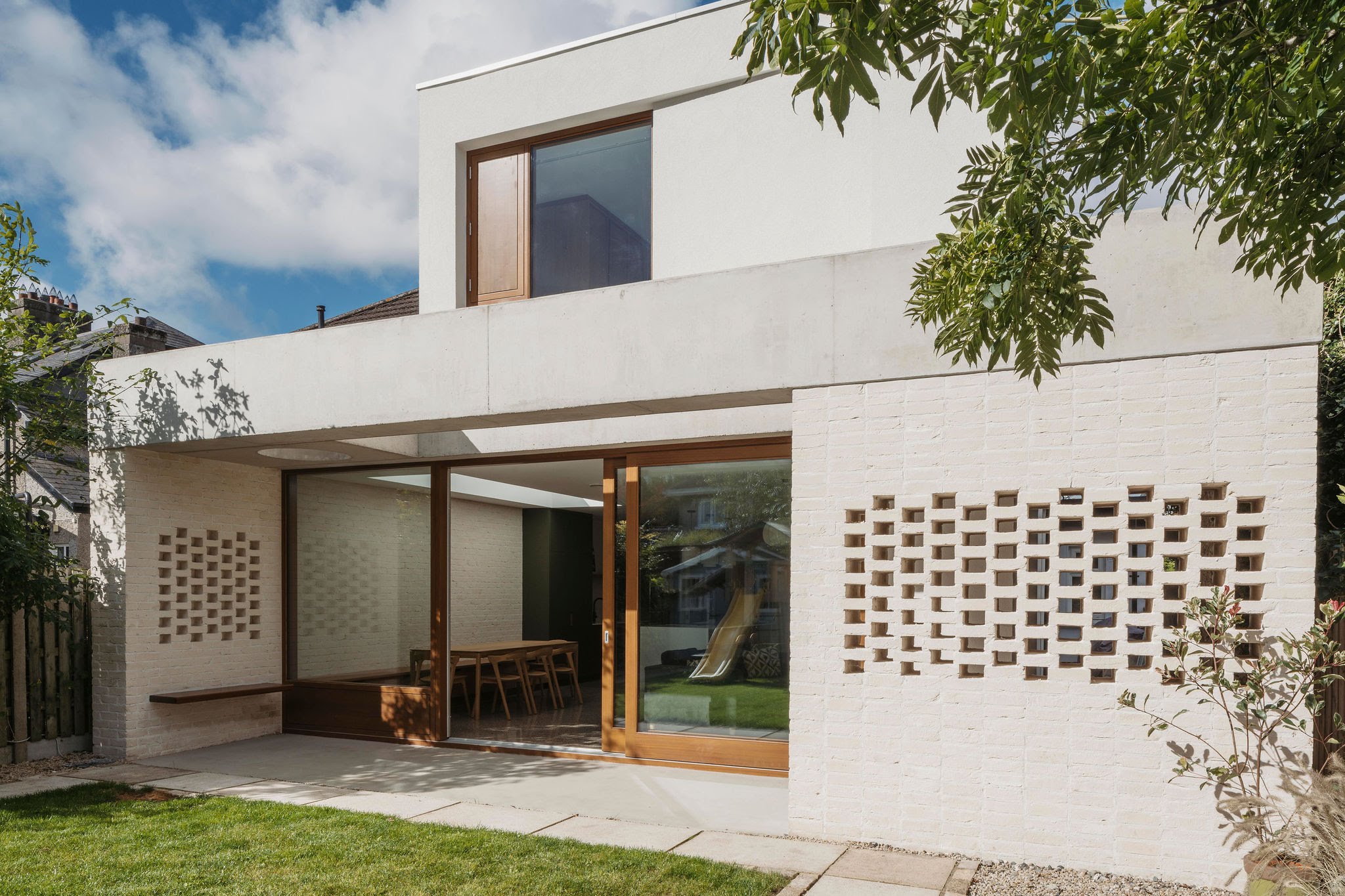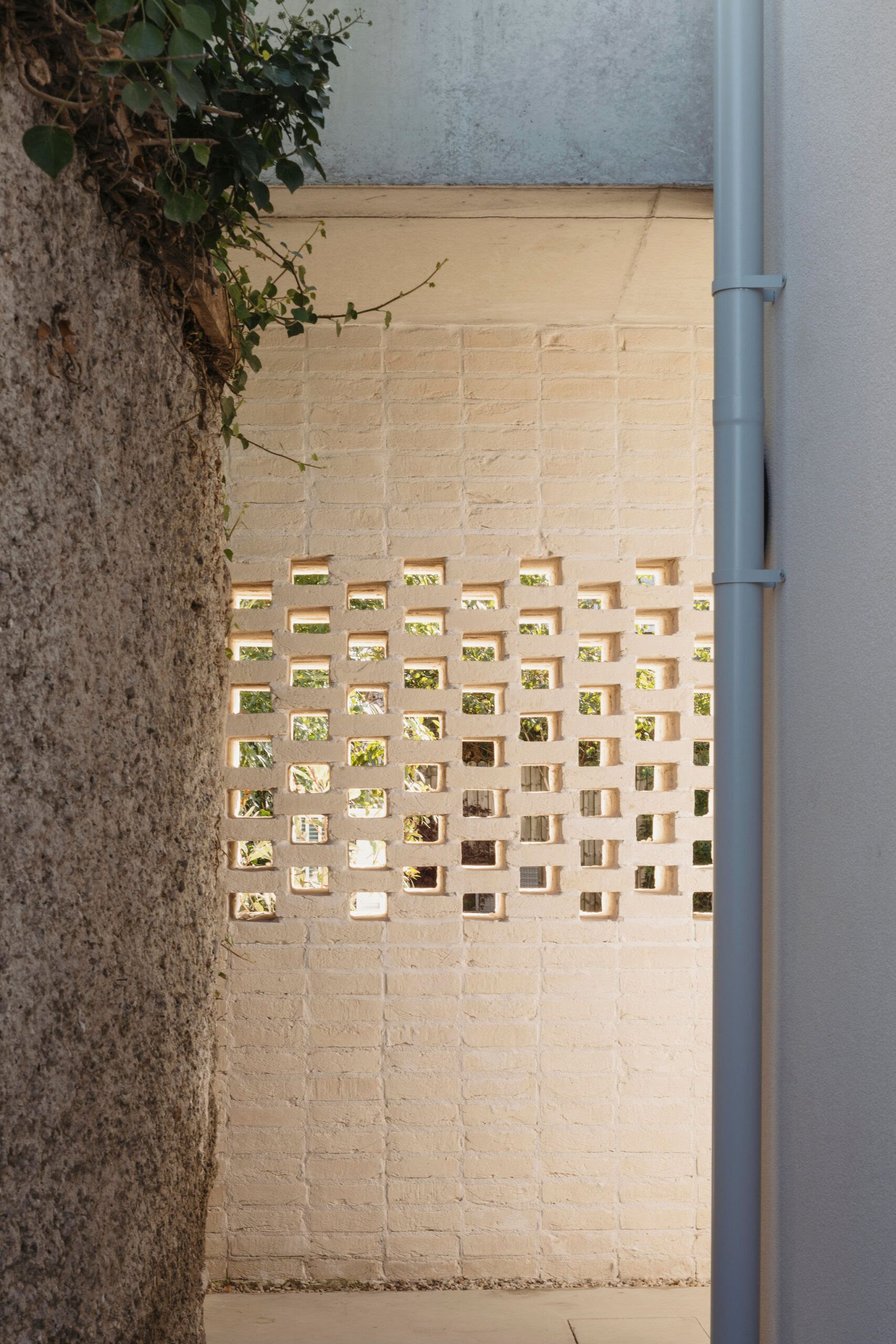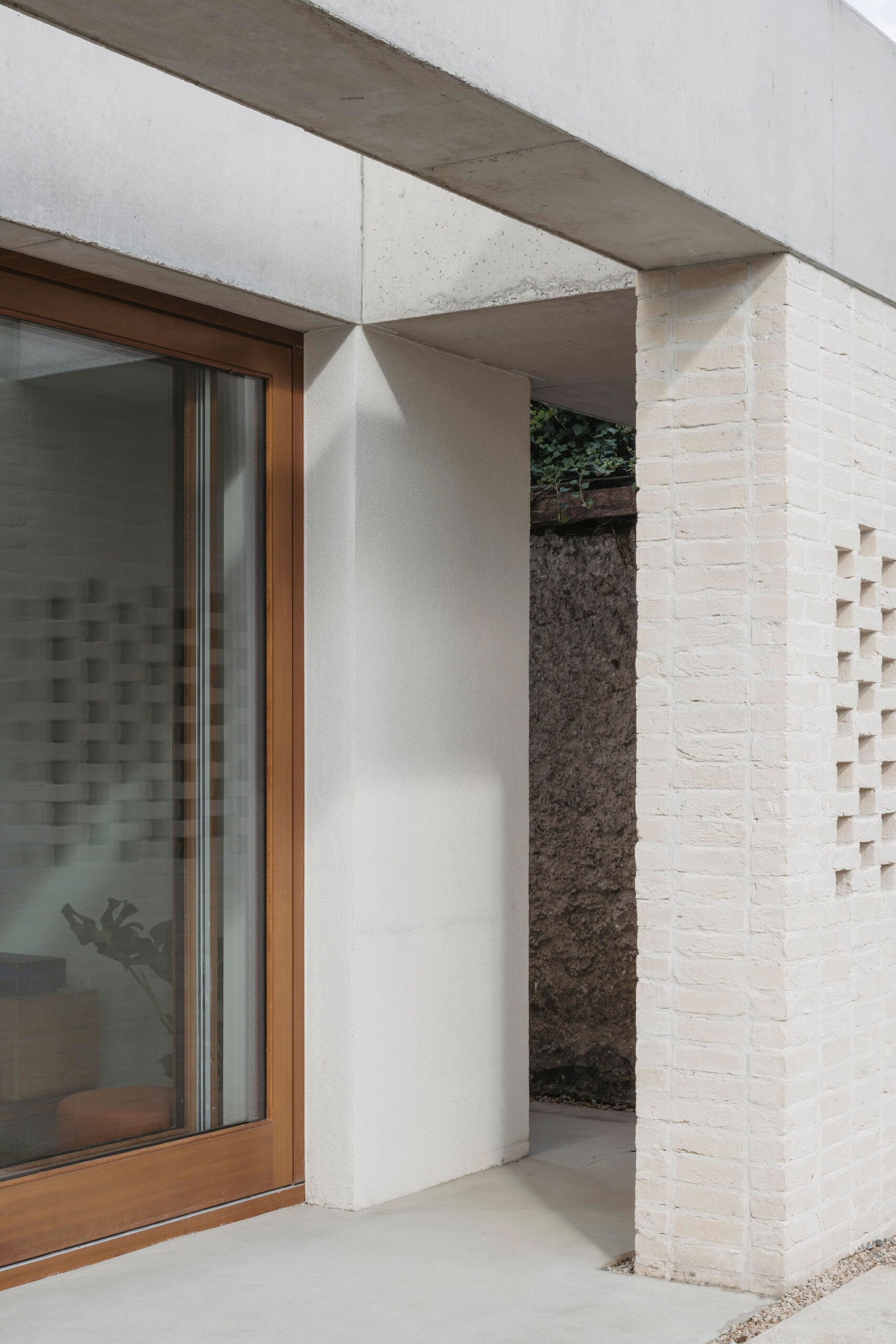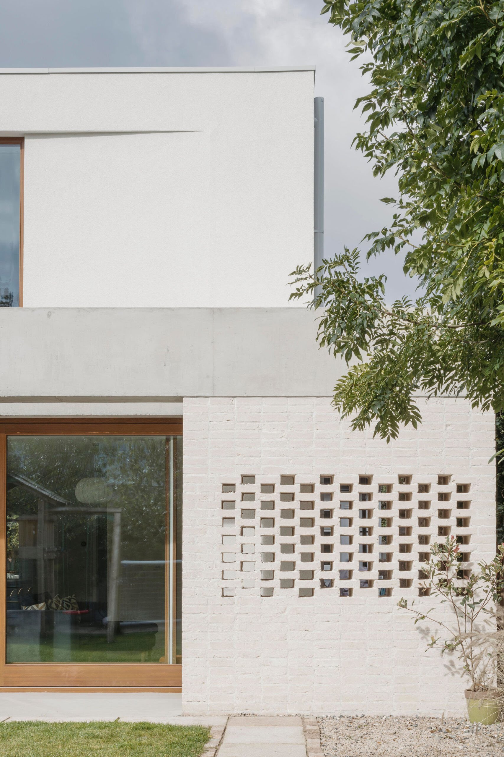 “The brick to the rear reflects the brick to the front of the house, even if it is very different in application and colour. This change in tone ensured a neutral textured backdrop for the small garden, which could easily have been overpowered by a stronger coloured brick. The brick piers also screen the functional side passage to the utility room, integrating the division of the garden into the design.”